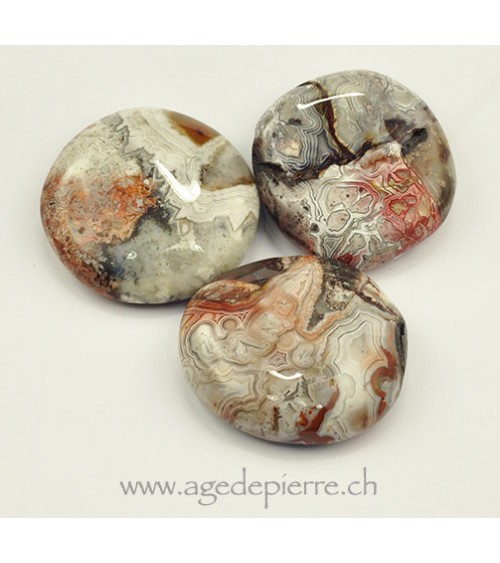 Quick view Add to cart Agate crazy lace galet plat Prix 10,00 CHF Galet plat d'agate crazy lace Dimensions: 30mm/40mm