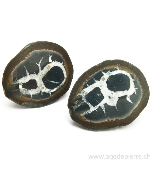 Quick view Add to cart Septaria paire de géodes Prix 6,00 CHF Paire de géodes de septaria Dimensions: 28mm/28mm Povenance: Maroc