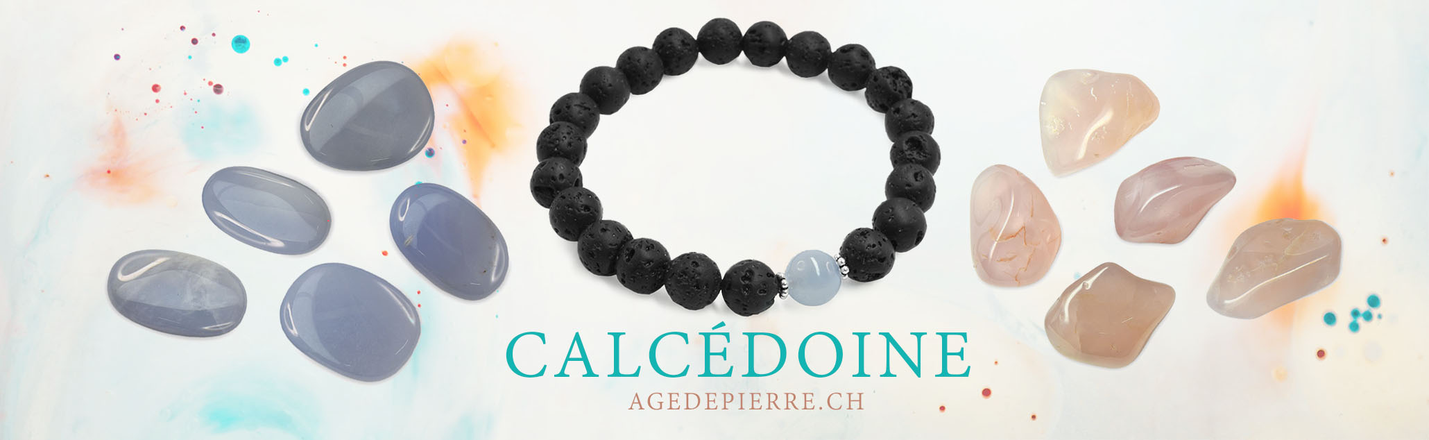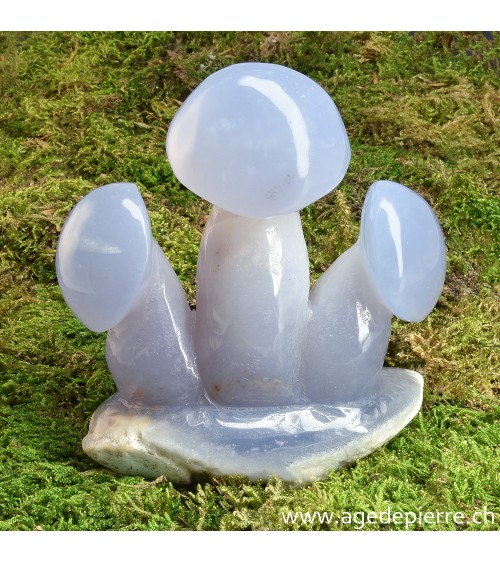 La calcédoine résonne avec le chakra de la gorge, on l'appelle la pierre du conférencier car elle aide à tenir un discours clair.