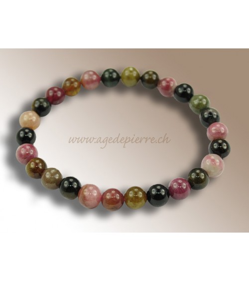 Quick view Add to cart Tourmaline multicolore bracelet avec perles de 6mm Prix 48,00 CHF Bracelet monté avec un mélange de tourmaline rose, verte et noire Diamètre des perles: 6mm Vous pouvez nous indiquer votre taille de tour de...