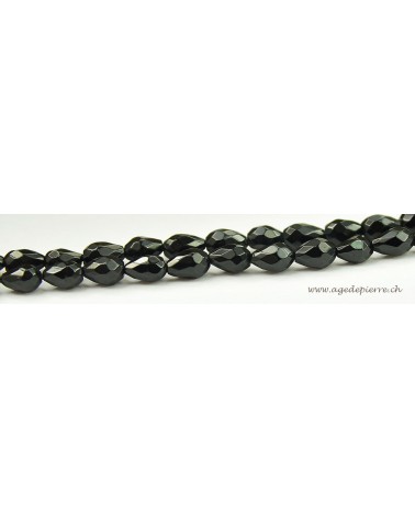 Demi-rang de 33 perles de tourmaline noire taillée en forme de goutte et facettées