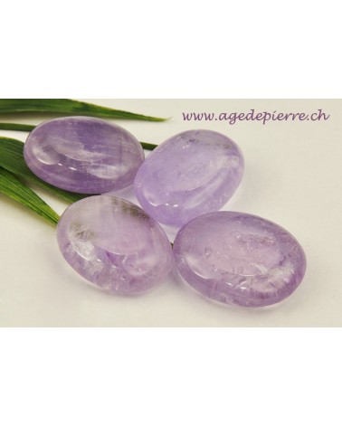 Galet plat d'améthyste de belle qualité. Deux tailles de galets disponibles: mini et grand Mini: Dimensions approximatives: 20mmx23mmx7mm Grand: Dimensions: 38mm/32mm/10mm Les pierres que vous commandez peuvent varier de celle de la photos mise en exemple. Ref: a18b a18c