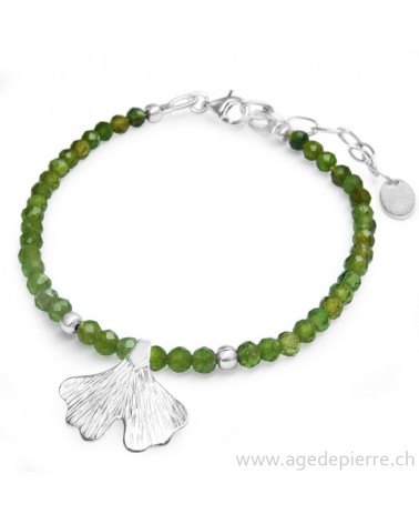 Bracelet "Ginko" montées avec argent 925 et tourmaline verte