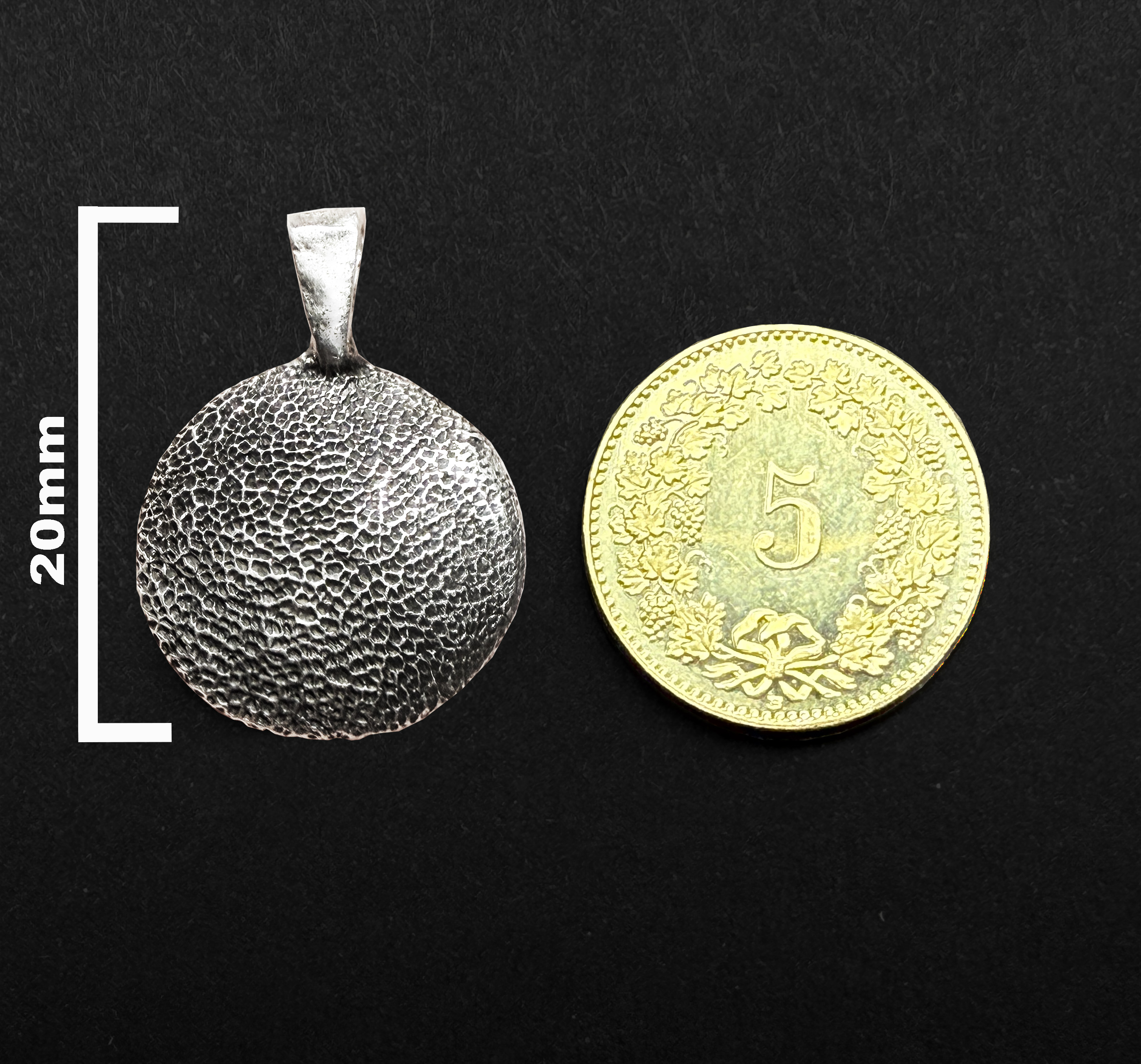La taille du pendentif mesurera approximativement entre 20mm et 25mm.